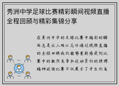 秀洲中学足球比赛精彩瞬间视频直播全程回顾与精彩集锦分享