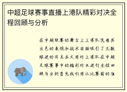 中超足球赛事直播上港队精彩对决全程回顾与分析